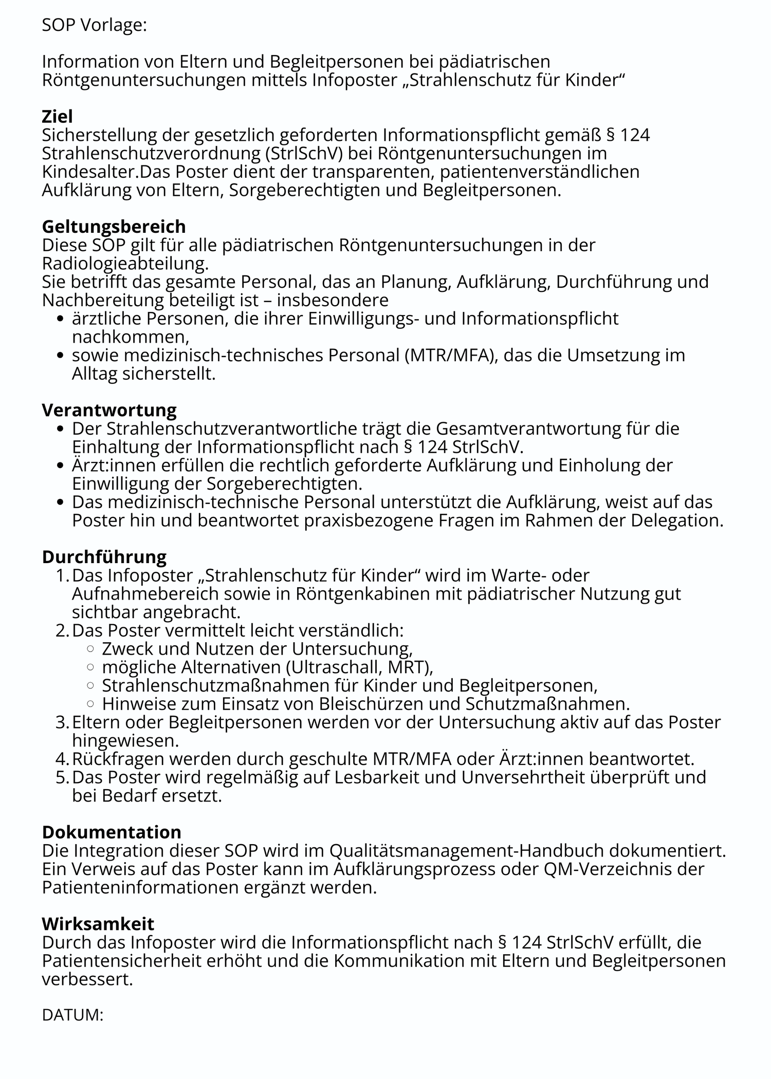 Bei jeder Bestellung ist eine SOP-Vorlage enthalten, die das Poster direkt in bestehende Abläufe integrieren lässt – schnell, rechtssicher und ohne Zusatzaufwand.